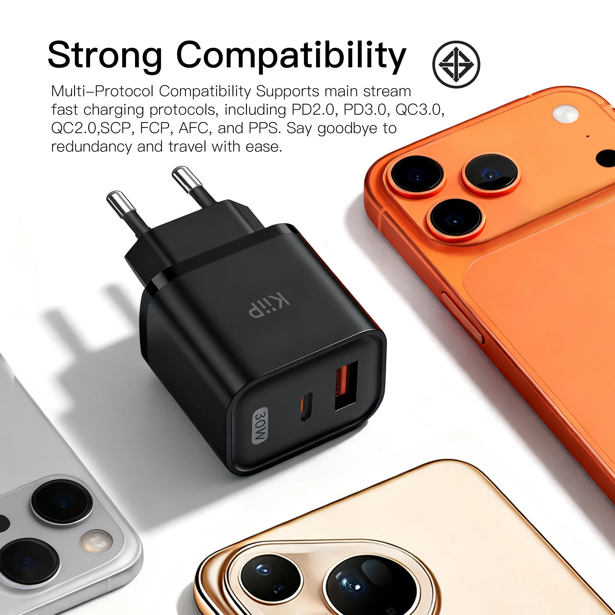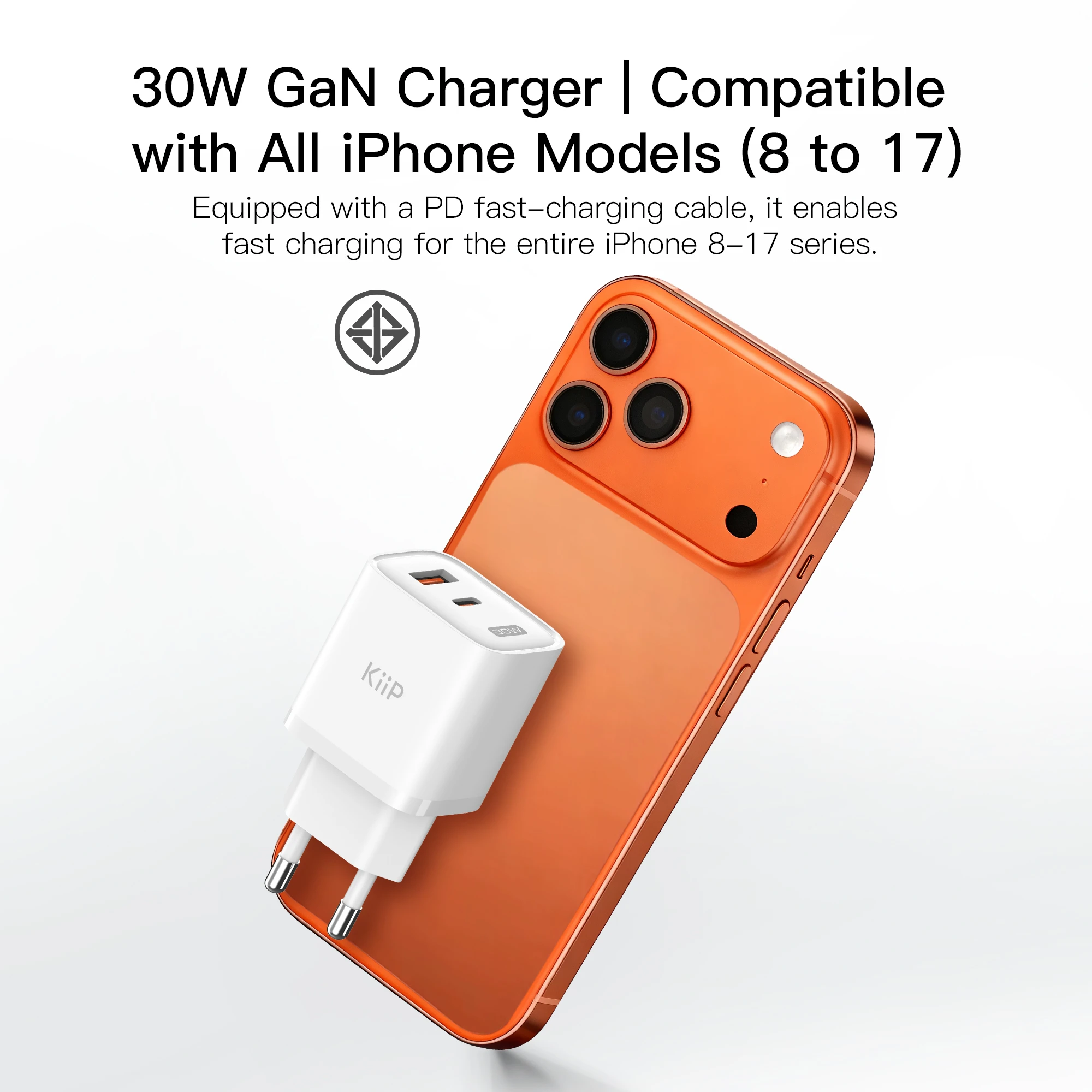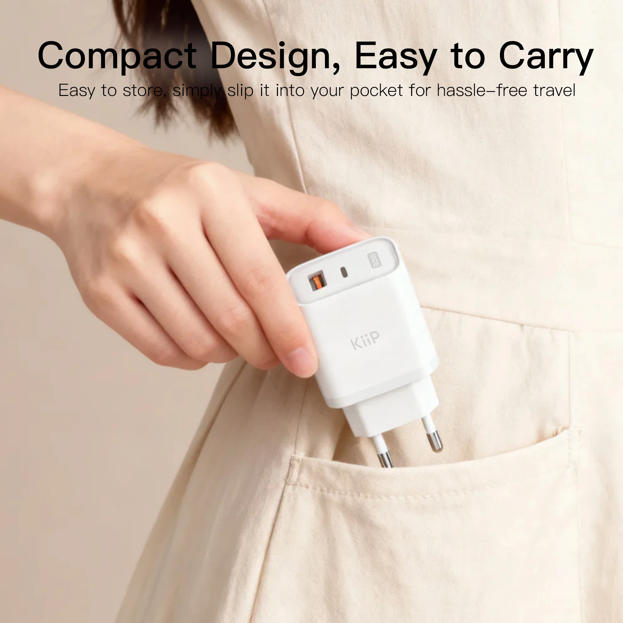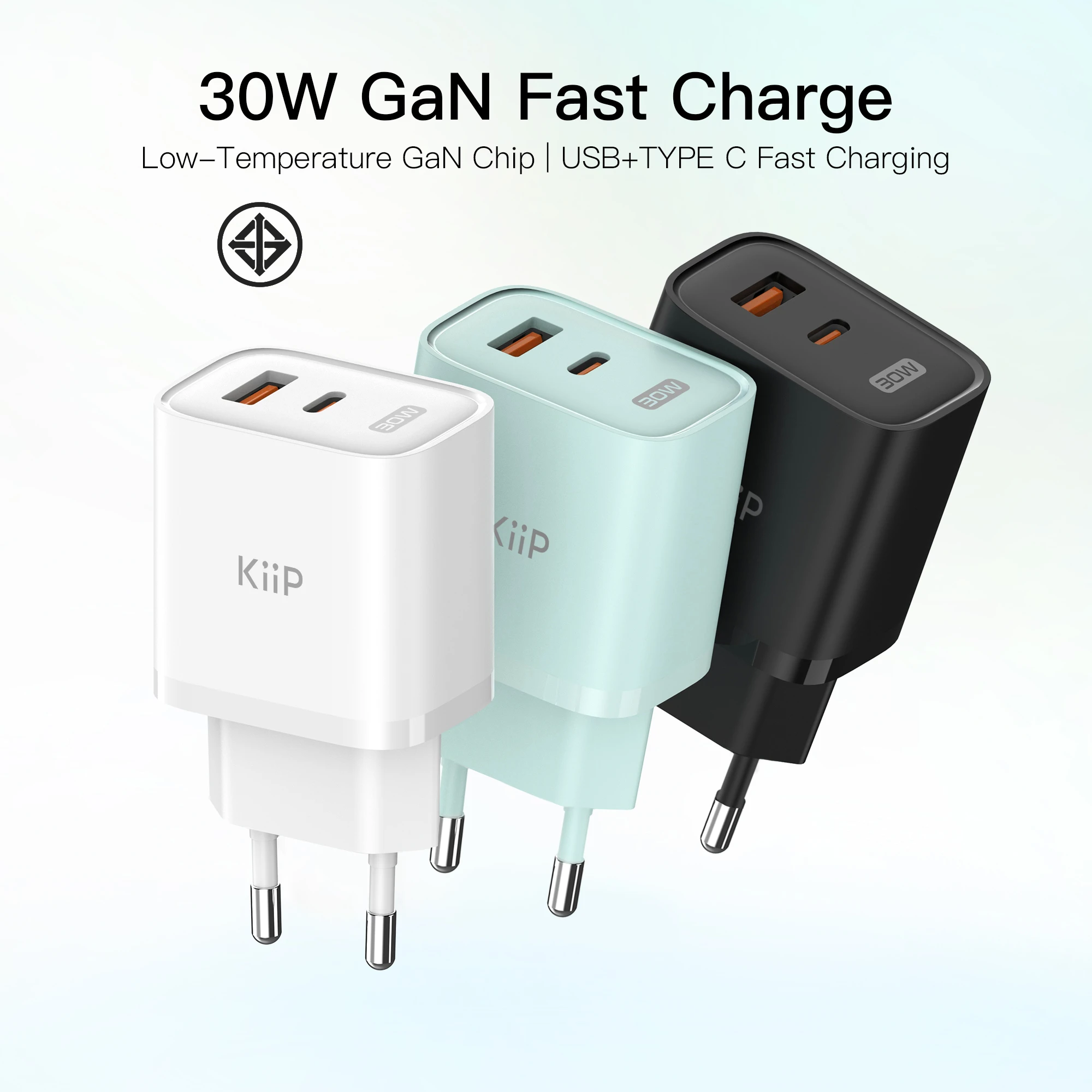 1* KiiP C30E GaN Fast Charger 30W Dual Port Fast Charging Travel Adapter