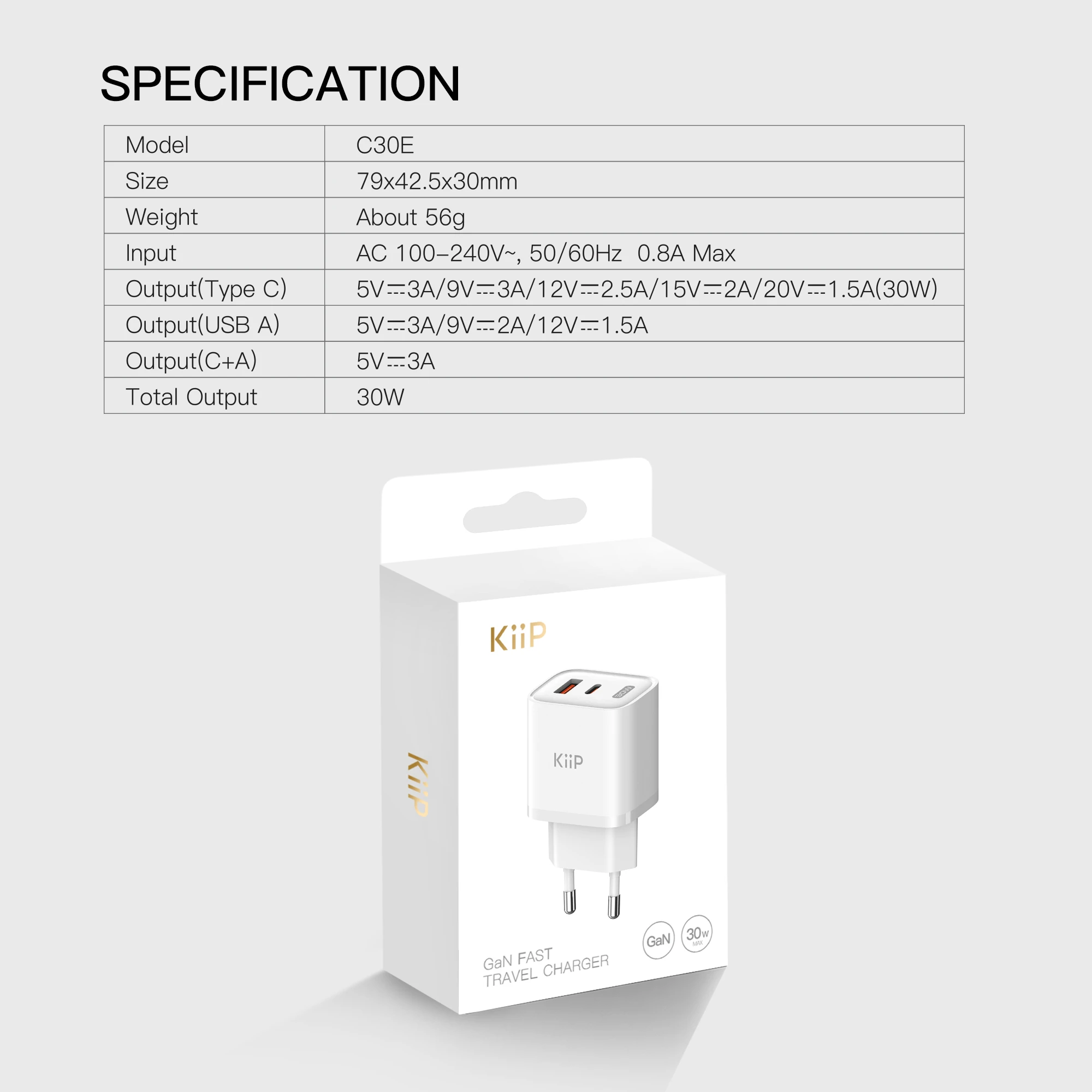 Nama : KiiP C30E GaN Fast Charger 30W Dual Port Fast Charging Travel Adapter