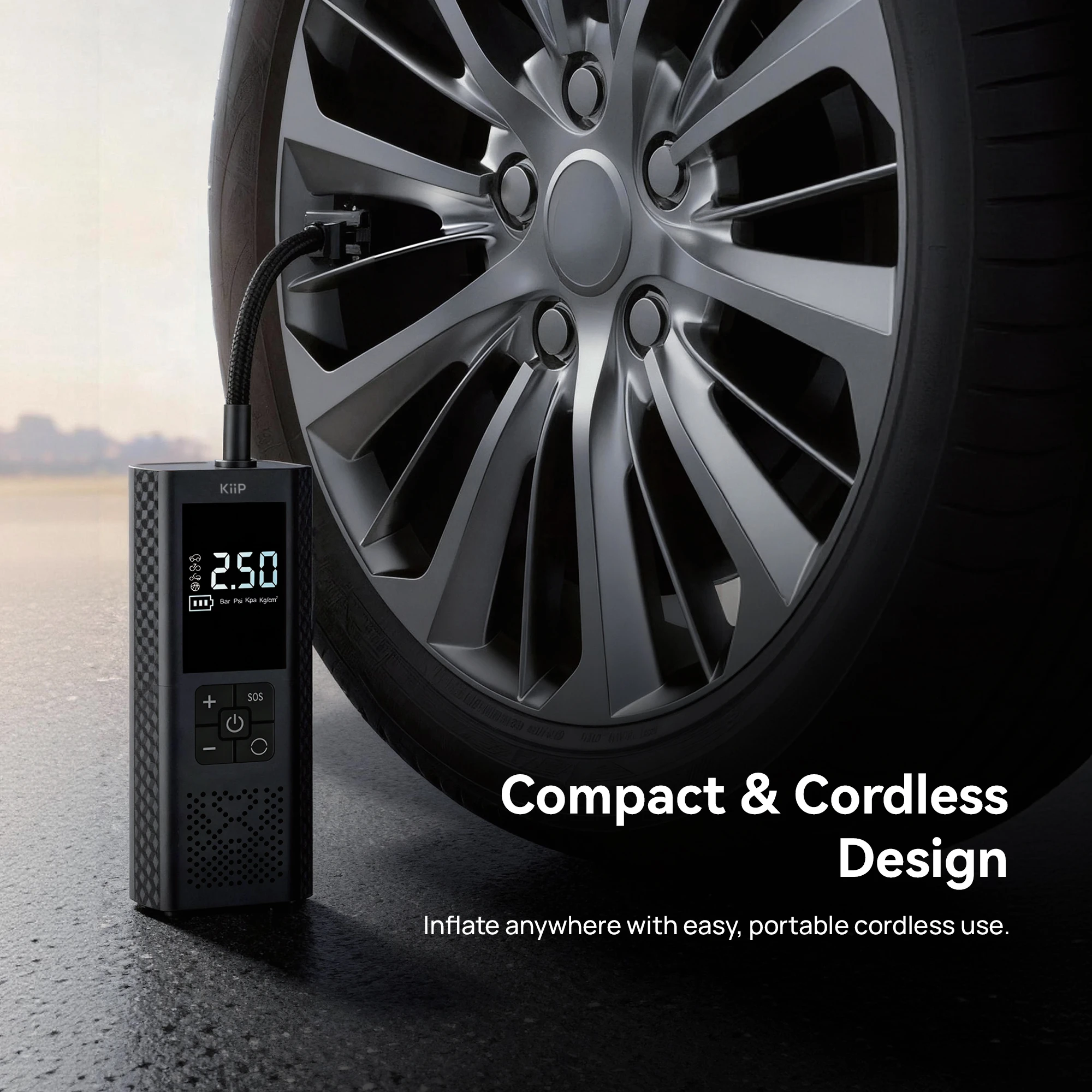 Desain nirkabelnya memungkinkan membawa alat ini di dalam mobil, tas sepeda, atau ransel untuk penggunaan darurat kapan saja.