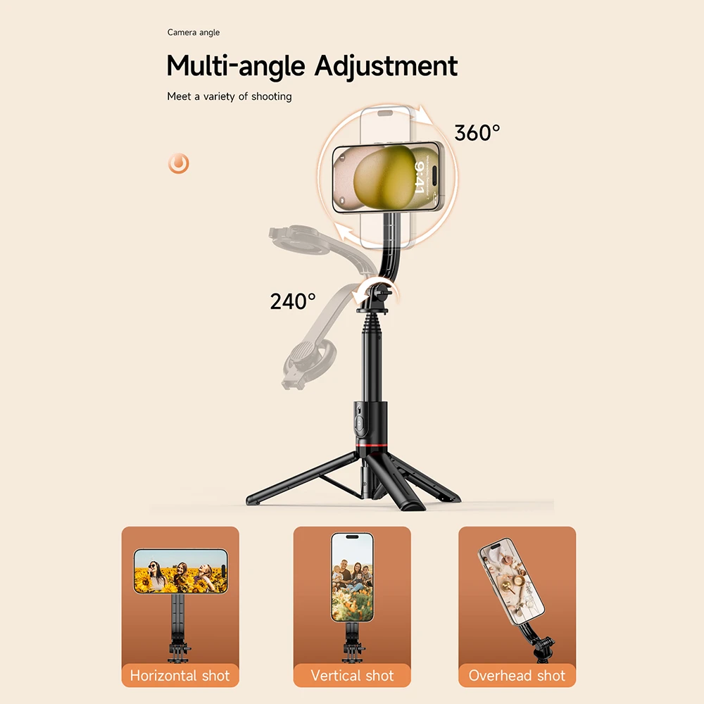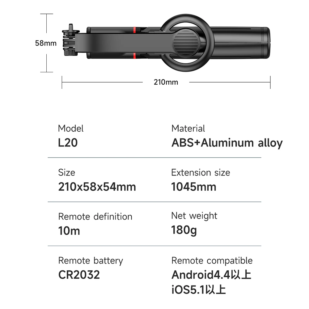 – Tiang teleskopik dengan tinggi yang dapat disesuaikan 21-104cm, cocok untuk pengambilan gambar pada sudut yang berbeda, video, live streaming, dan berbagai kebutuhan lainnya